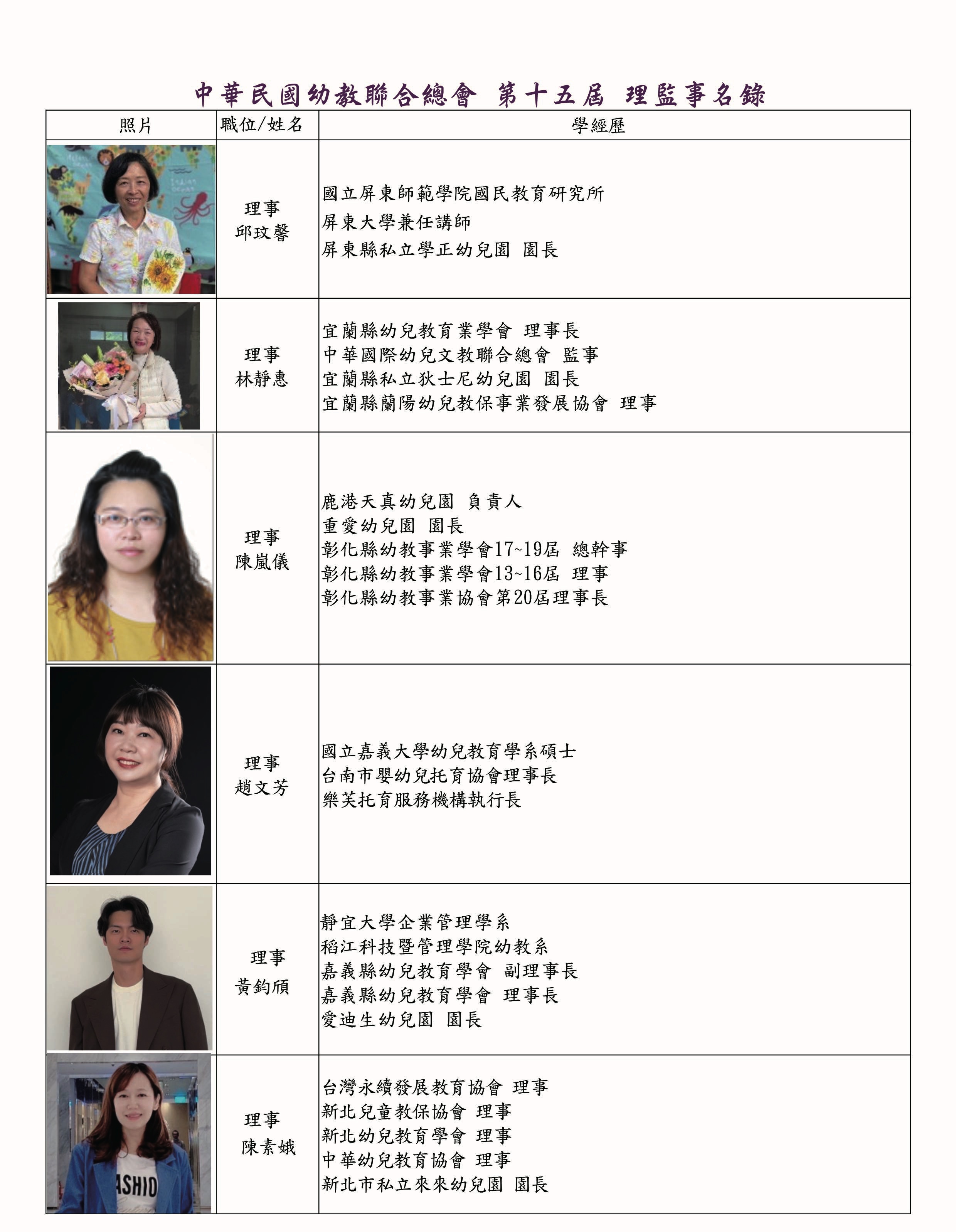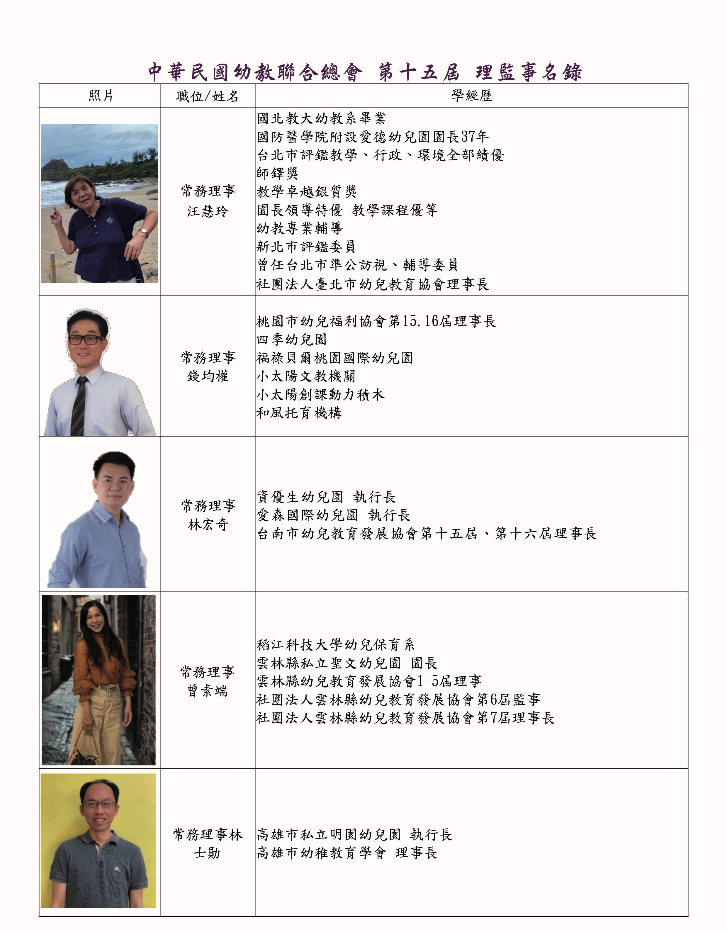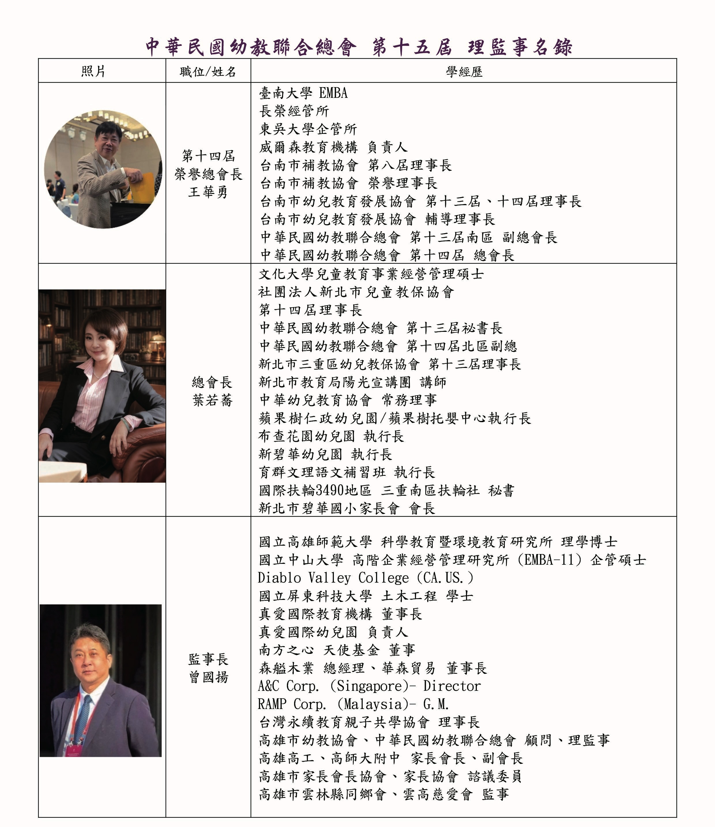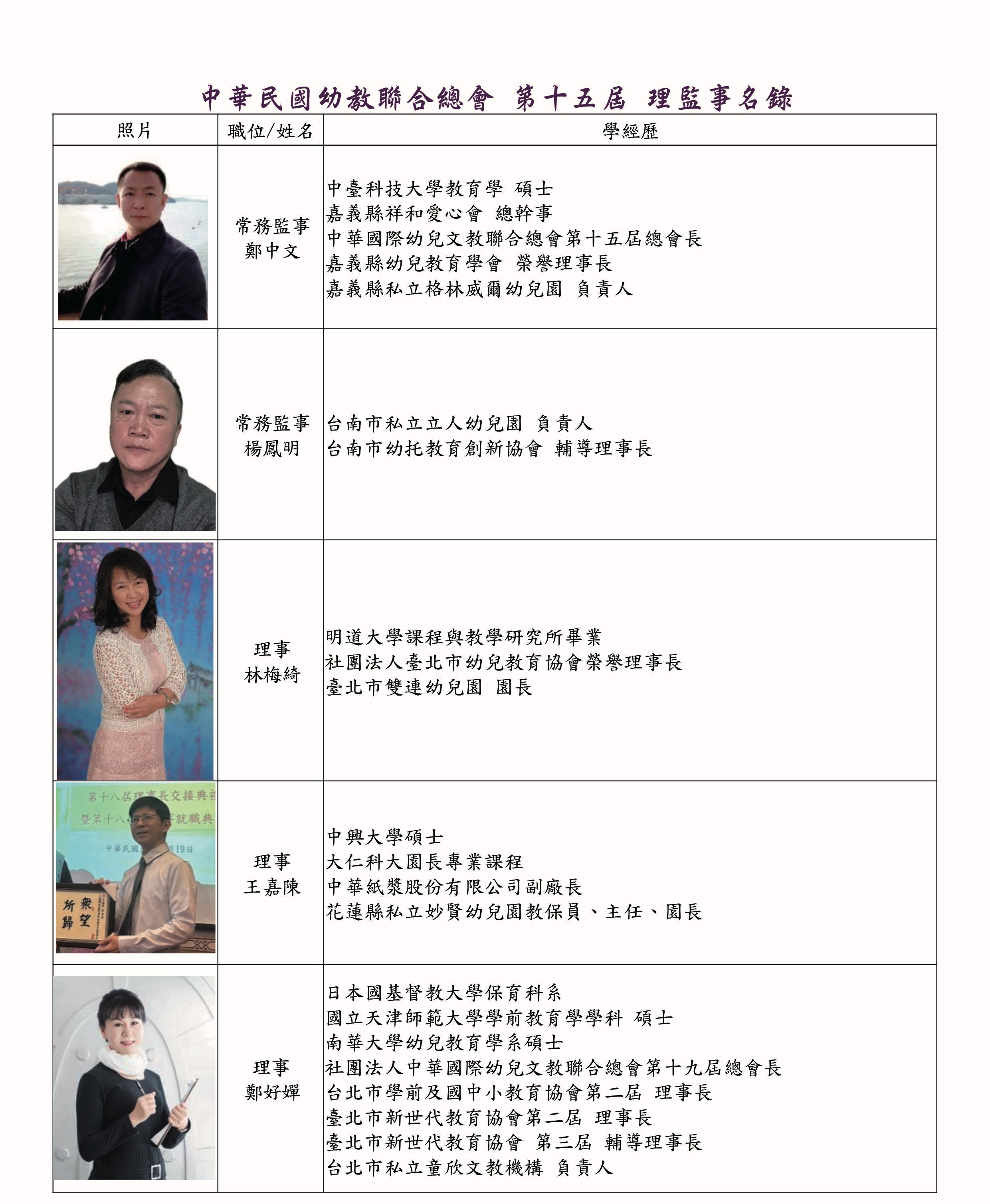 理監事暨會務人員名錄
