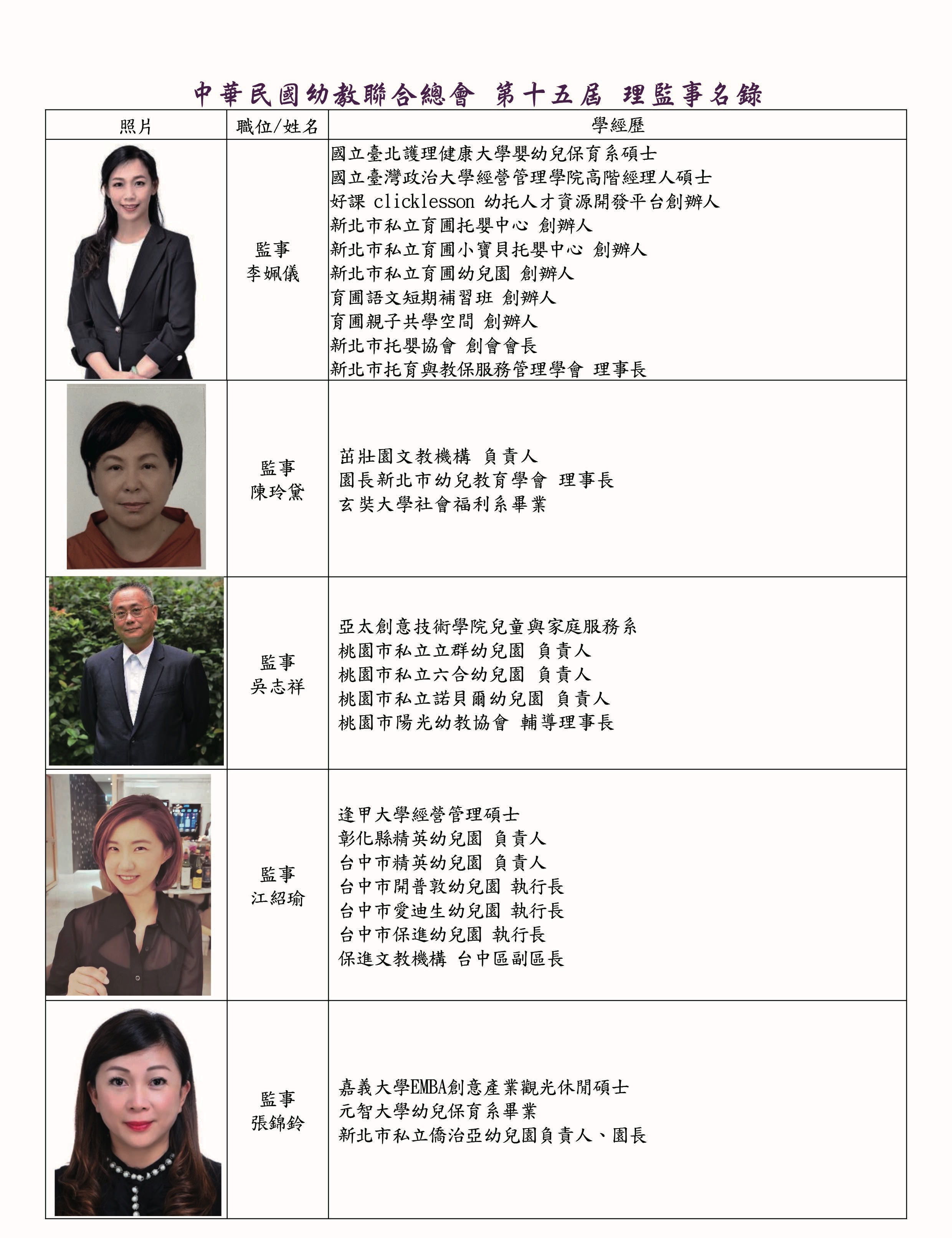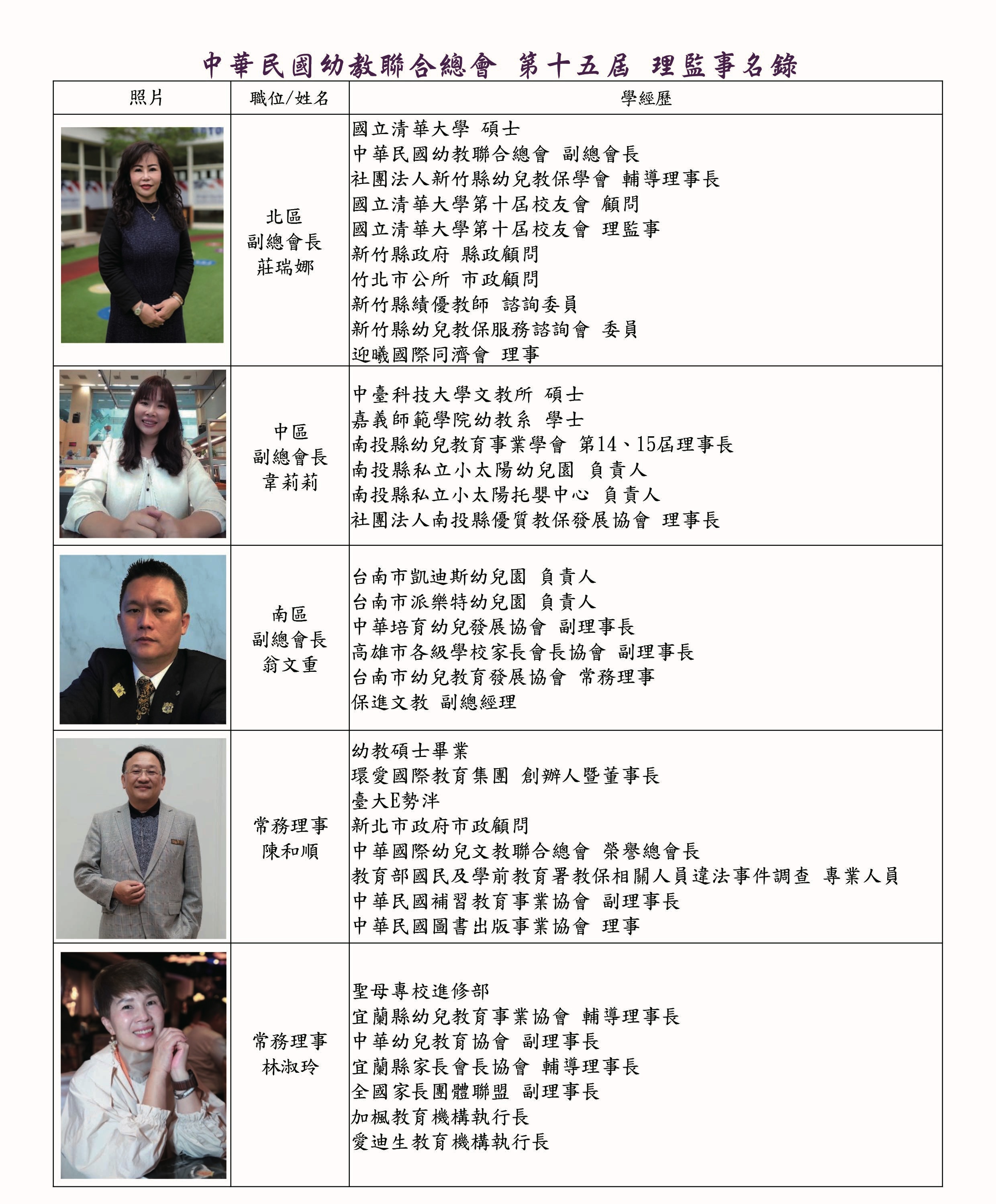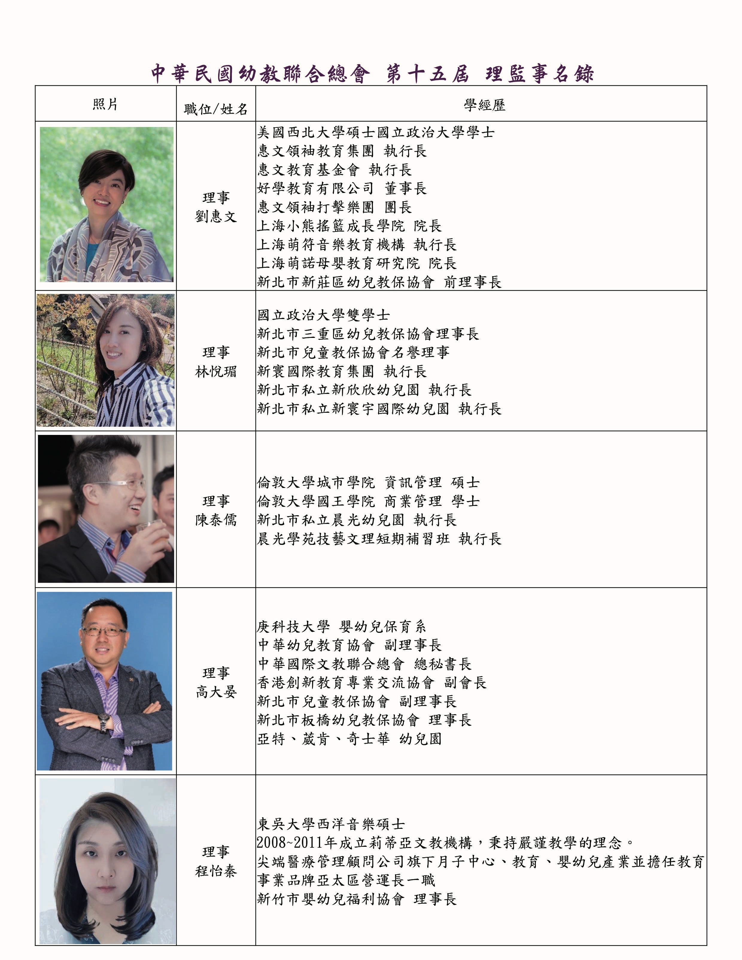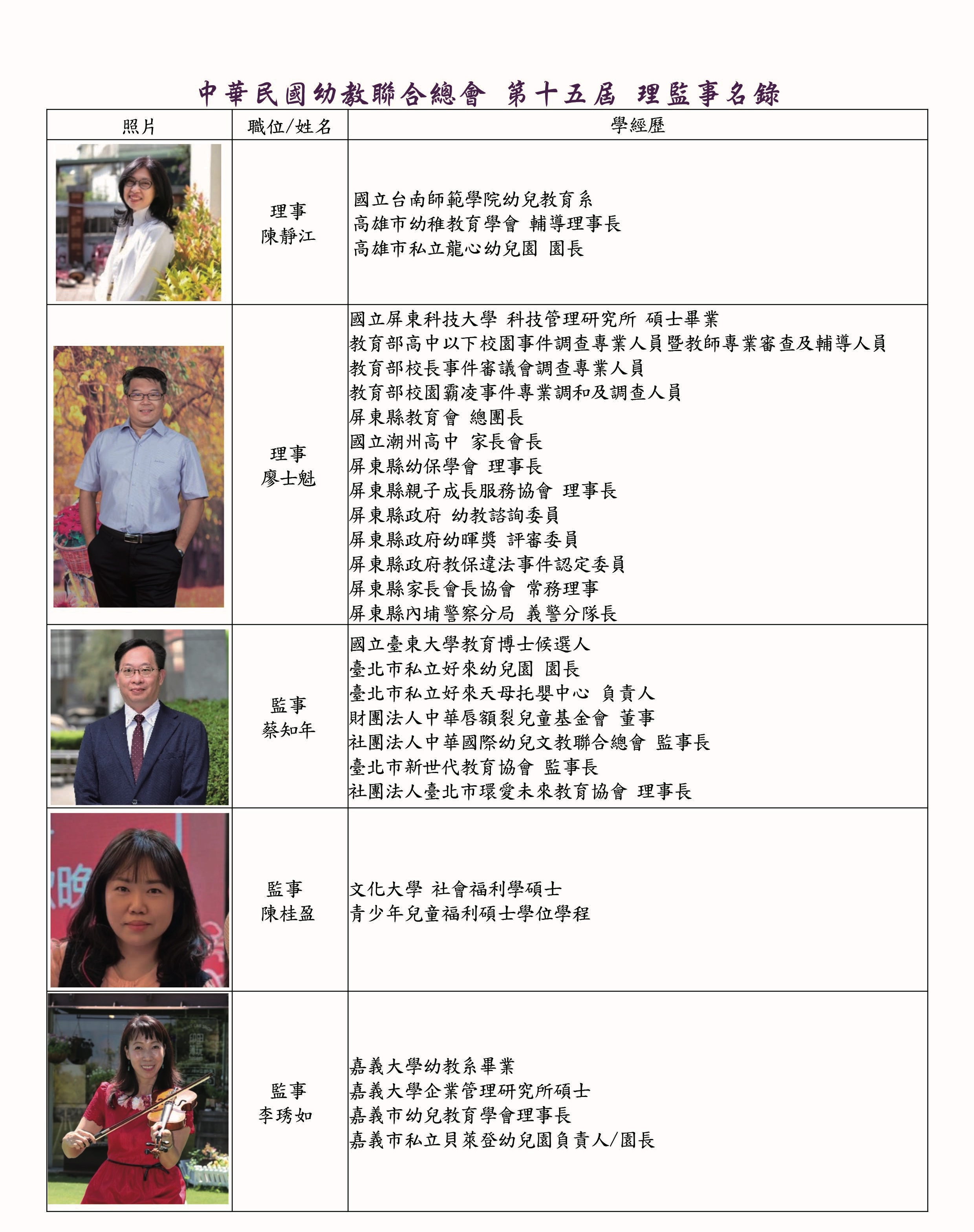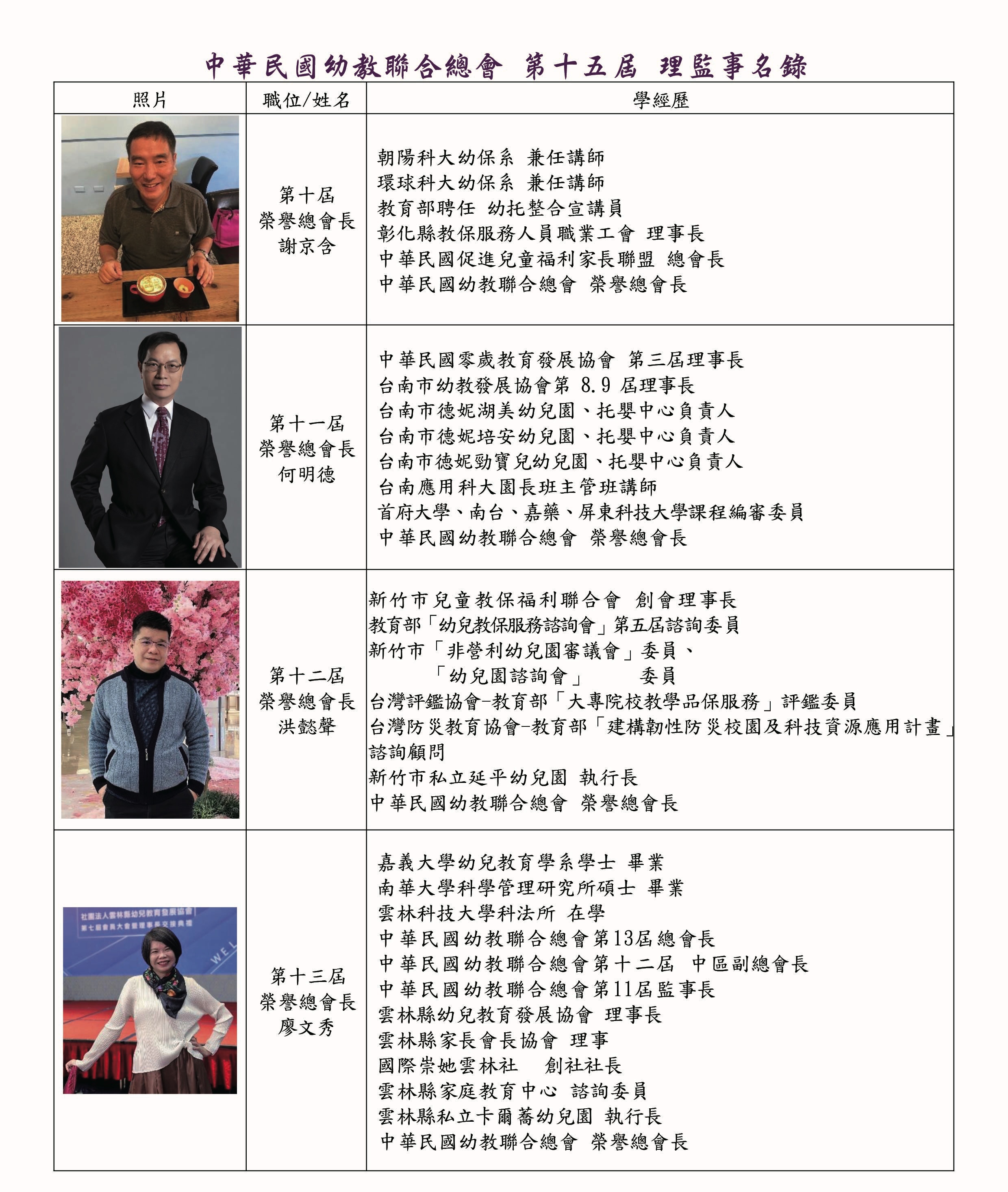 理監事暨會務人員名錄